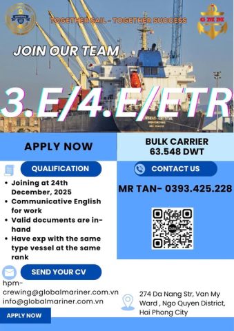 • HOẠT ĐỘNG TUYẾN WORLD WIDE – KẾ HOẠCH NHẬP TÀU NGAY KHI HOÀN THÀNH PHỎNG VẤN VÀ KIỂM TRA THEO CHUYÊN NGÀNH CỦA CHỦ TÀU ( MID-END DEC.2025 )