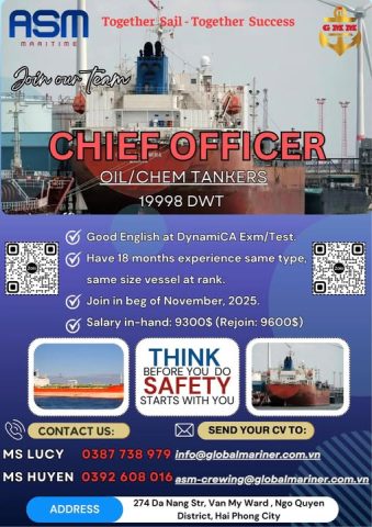 - TÀU OIL&CHEM TANKER ( 19.998 DWT ) – CHỦ TÀU : ASM Maritime B.V