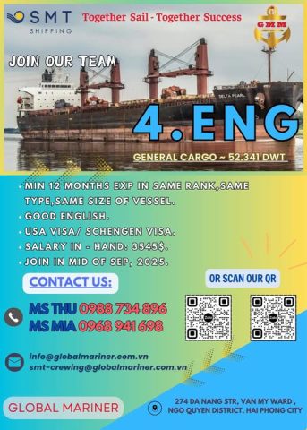 - YÊU CẦU TIẾNG ANH TỐT – KINH NGHIỆM TỐI THIỂU 2 DATE TRÊN TÀU CÙNG LOẠI